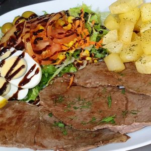 Bistec a la plancha y ensalada. Almuerzos. Menús.