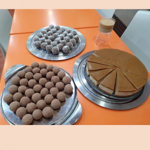 Bolas de coco cacao y tarta de chocolate